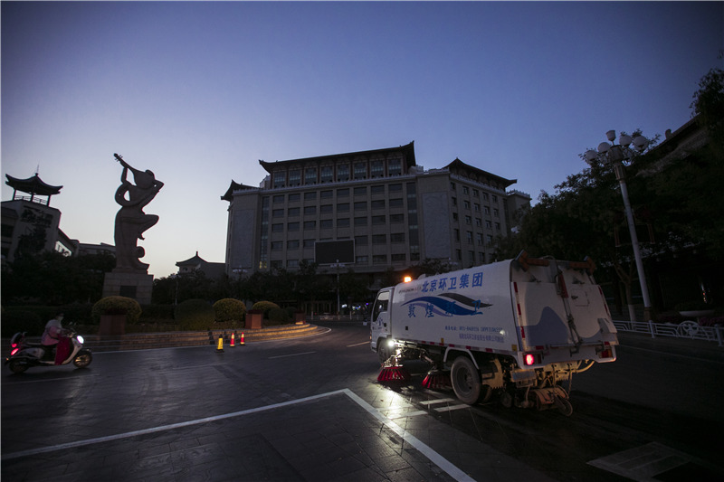 图为敦煌市阳关路。连日来,敦煌城市环卫工作者加班加点,紧抓清洁维护工作,为第三届敦煌文博会的开幕营造了一个良好的城市环境。(摄影 张大辰)