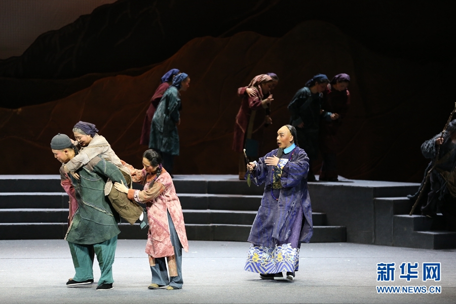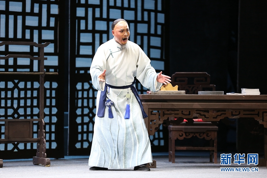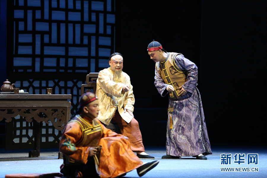 8月8日晚,在全国地方戏演出中心,演员表演秦腔《许铁堂》。新华网发(易思耿 摄)