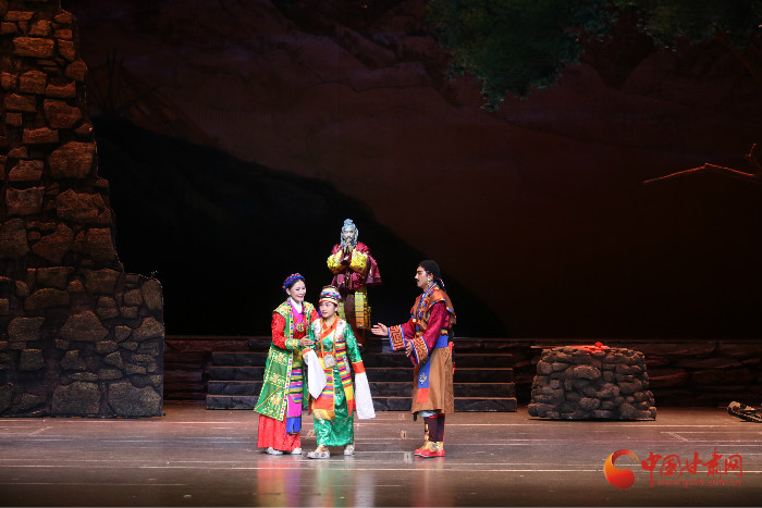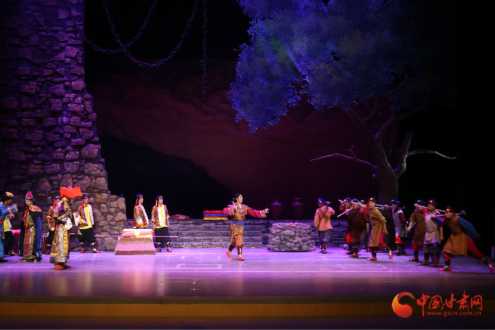 中国甘肃网9月14日讯(本网记者 杨瑞 文/图)9月14晚8点,新创大型安多南木特藏戏《唐东杰布》——雪域铁桥圣者和藏戏鼻祖的传奇故事在兰上演。