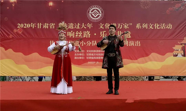 年关将至,年味愈浓,1月19日下午,由文化和旅游部非物质文化遗产司支持,甘肃省文化和旅游厅主办,甘肃省民族歌舞团承演的2020年甘肃省“非遗过大年 文化进万家”系列文化活动——“交响丝路·乐享非遗”甘肃省非遗小分队下基层慰问演出在临洮县双联村文化广场举行,现场近千人前来观看,当地群众在家门口享受了一道丰盛的文化大餐。