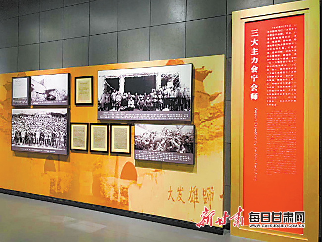 第二部分是“三大主力胜利会师”,反映了三大主力红军在会宁胜利会师的喜庆场景和主要活动。其中大型多媒体场景秀《三大主力会师》,采用了国内一流展示手段恢弘再现了三大主力会师的胜利场景。