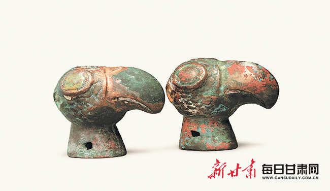 永登县树坪公社榆树沟村出土鹰首杆头饰。