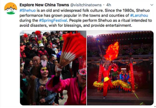 同时,兰州市文旅局积极与中国日报合作开展海外宣传,利用其Facebook官方账号Discover Beautiful China及Explore New China Towns对兰州夜景、兰州黄河风情线、青城古镇、兰州社火等金城风景和民俗风情进行了深入细致地宣传报道,构筑了兰州文旅海外宣传的新阵地,开启了“云·游”金城好风光的新视角。