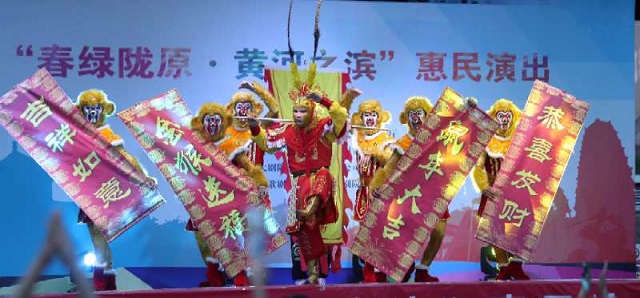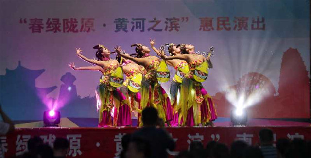 “春绿陇原·黄河之滨”惠民演出是流动舞台车在配发仪式后的首次亮相,也是省歌剧院、省陇剧院两大省级文艺院团联袂奉现的一次高水平演出。当晚的演出,黄河岸边极具时代气息的流动舞台、绚丽多彩的甘肃彩车交相辉映,形成了一个文化特色鲜明、艺术气息浓郁的表演区域,演出节目融汇舞蹈、歌唱、器乐演奏、戏曲、曲艺等多种艺术形式,敦煌舞《妙音反弹》、陇剧经典片断和深受群众喜爱的戏曲绝活《变脸》、男女声独唱等一个个精彩的节目让现场群众掌声雷动、欢声四起。
