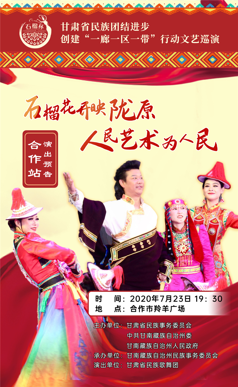 据悉,7月23日晚7时,“石榴杯”甘肃省民族团结进步创建“一廊一区一带”行动文艺巡演将在合作市羚羊广场上演。