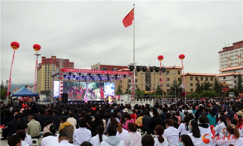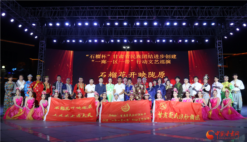 中国甘肃网7月24日讯(本网记者 程健 文/图)7月的甘南,生机盎然、繁花似锦。幸福的家园,充满深情的问候和礼赞。7月23日晚,由甘肃省民族事务委员会联合中共甘南藏族自治州委、自治州人民政府主办,自治州民族事务委员会、甘肃省民族歌舞团承办的“‘石榴杯’甘肃省民族团结进步创建‘一廊一区一带’行动文艺巡演——石榴花开映陇原”在合作市香巴拉主题文化广场倾情上演,为自治州各族群众奉献了一场丰盛的民族歌舞盛宴。甘肃燎原乳业集团、合作市舞之翼艺术培训学校为此次演出赞助。