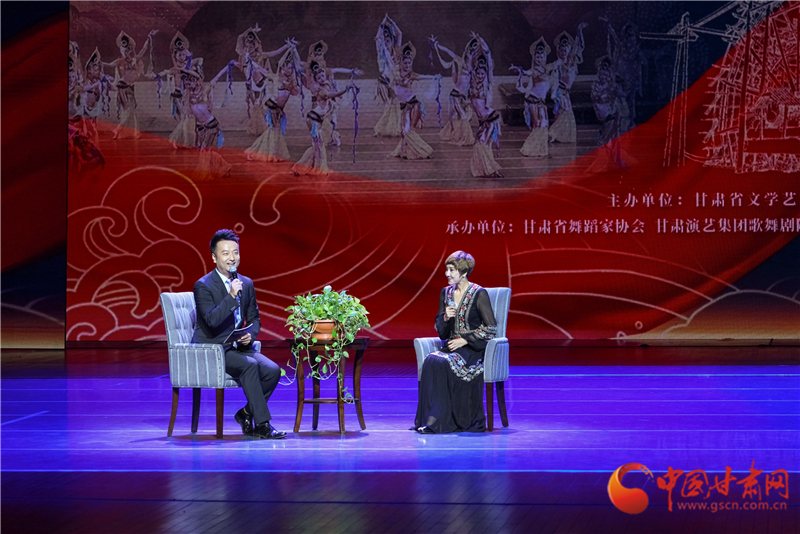 在开场的访谈中,甘肃省舞蹈家协会专职副主席、国家一级演员、《丝路花雨》1979版主演,以及本次活动的艺术总监左丽坦言,这次展演的初衷就是推介年轻优秀演员,希望这两部经典舞剧能在“碰撞”中产生火花。她表示,目前这两部舞剧由甘肃名片升格为国家文化名片,把这两部舞剧推介好、传承好、创新好,是我们甘肃舞蹈工作者、文艺工作者的骄傲与责任。几位主演:3位“英娘”、5对“月牙和莫高”也在访谈中表达了传承的重要性,简短的采访展现了她们对这两部舞剧的热爱和对艺术的坚守。