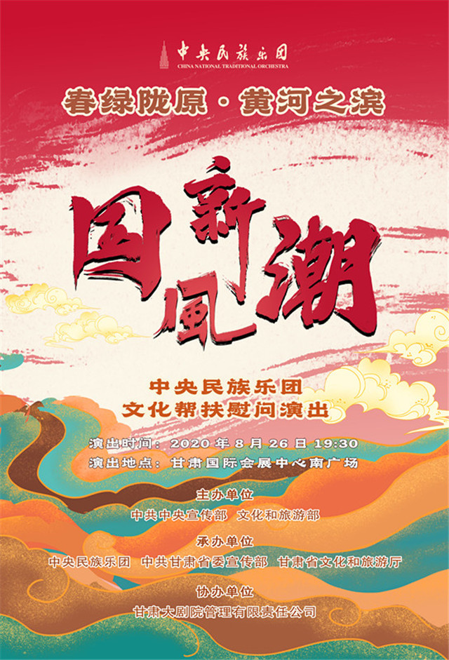 8月26日晚8时,由中共中央宣传部、文化和旅游部主办的中央民族乐团文化帮扶慰问演出《国风新潮》,将在甘肃会展中心南广场带来一场精彩绝伦的民族音乐盛宴,这是“春绿陇原·黄河之滨”惠民舞台迎来的首支国家级院团,也是中央民族乐团在甘肃的第五场慰问演出。“春绿陇原”文艺展演已成为甘肃省文旅融合发展的崭新名片,中央民族院团的这台高水准的演出,将有力提升“春绿陇原”的品牌影响力。