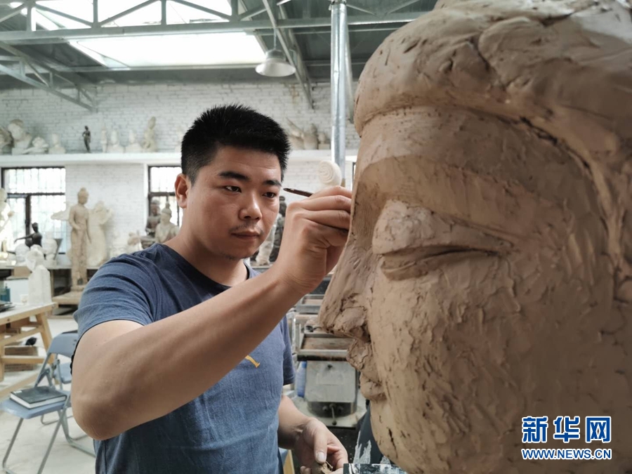 莫高里工匠村的雕塑者。新华网发(黄文新 摄)