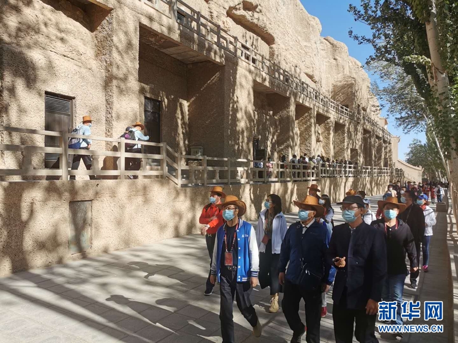 游客在莫高窟游览。新华网发(黄文新 摄)