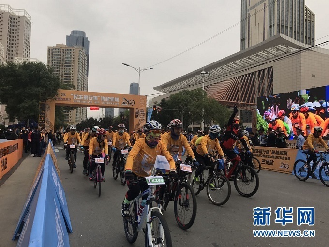 “陇越骑联”2020穿越丝绸之路(国际)山地自行车多日赛在甘肃兰州开赛。新华社记者 程楠 摄