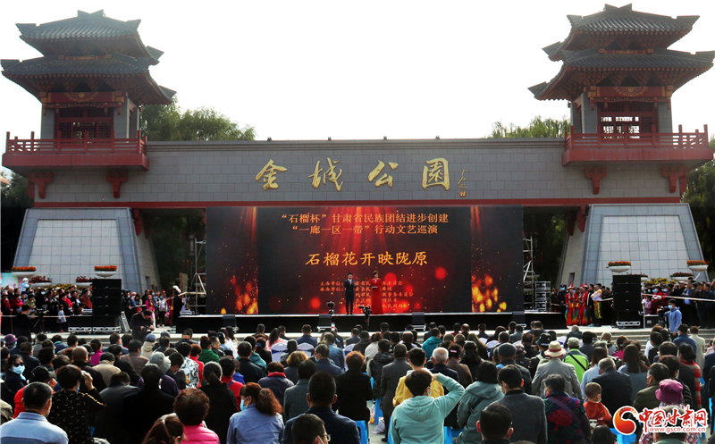 中国甘肃网10月19讯(本网记者 程健 文/图)10月18日下午,“石榴杯”甘肃省民族团结进步创建“一廊一区一带”行动文艺巡演来到了兰州西固区,给西固区各族群众奉献了一场丰盛的民族歌舞盛宴。据悉,本场演出为巡演的收官演出,“石榴杯”甘肃省民族团结进步创建“一廊一区一带”行动文艺巡演至此圆满结束。