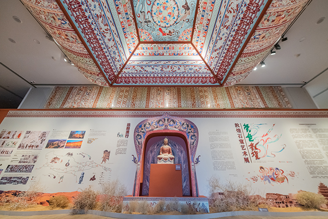 展览分为“丝路漫行”“壁上丹青”“庄严佛宫”“净土梵音”“通达丝路”“霓裳美仪”“匠心营造”以及“历程——讲述敦煌石窟艺术背后的故事”八部分内容,共展出了包括敦煌石窟各个时代最具代表性壁画和彩塑的临摹品、敦煌壁画中的乐器复制品、3D打印的敦煌壁画中建筑模型、复制敦煌石窟花砖、莫高窟洞窟微缩模型在内的100余件(套)展品,以及《舍身饲虎》和《莫高窟第172窟建筑漫游》动画影片2部,莫高窟第320窟复制洞窟1座,和60余张敦煌研究院珍藏的老照片和档案资料。展览集中展示了要道枢纽敦煌所见证的陆上丝绸之路的历史文化和丰富灿烂的敦煌石窟艺术,综合性展现了敦煌石窟的千年营建历史、丝路多元文化交汇的艺术结晶、敦煌文化的博大恢弘,以及一代代莫高窟人艰苦创业,开拓敦煌文物保护研究事业的非凡历程。展览将持续至2021年2月28日。