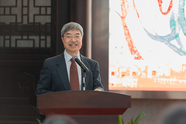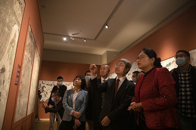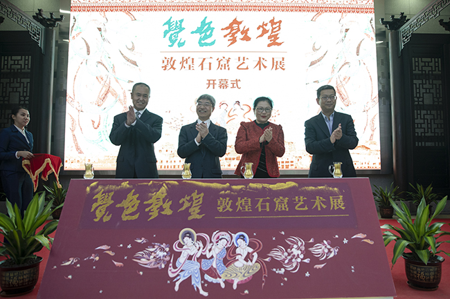 海南省人民政府副秘书长司海英、甘肃省文化和旅游厅一级巡视员火玉龙、敦煌研究院院长赵声良、海南省旅游和文化广电体育厅副厅长刘成共同为展览揭幕。
