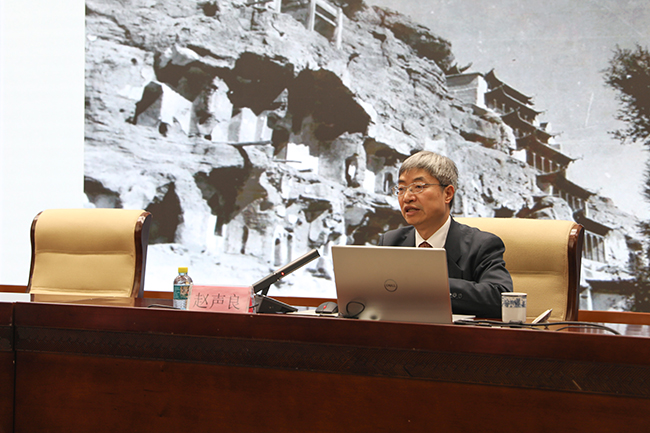当天下午,敦煌研究院院长赵声良受邀在海南省博物馆多功能厅作题为《莫高窟人与莫高精神》的专题报告。在一个多小时的报告中,他用温厚亲和的声音,从敦煌石窟保护研究事业的开创、改革开放迎来敦煌事业的腾飞、新时期敦煌事业的发展、发扬“莫高精神”持续推进敦煌事业等四个部分,把以常书鸿、段文杰、樊锦诗等为代表的一代代“莫高窟人”薪火相传,扎根敦煌的坚守、担当、奉献、进取娓娓道来,让聆听者闻之动容。