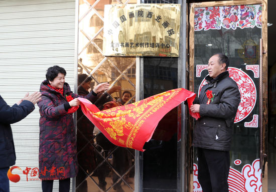 定西市人大常委会主任王美萍、中国国画院西北画院院长马尚明为中国国画院西北画院定西书画艺术创作培训中心揭牌