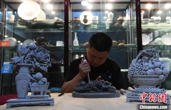 图为甘肃临夏艺人制作砖雕。(资料图) 杨艳敏 摄
