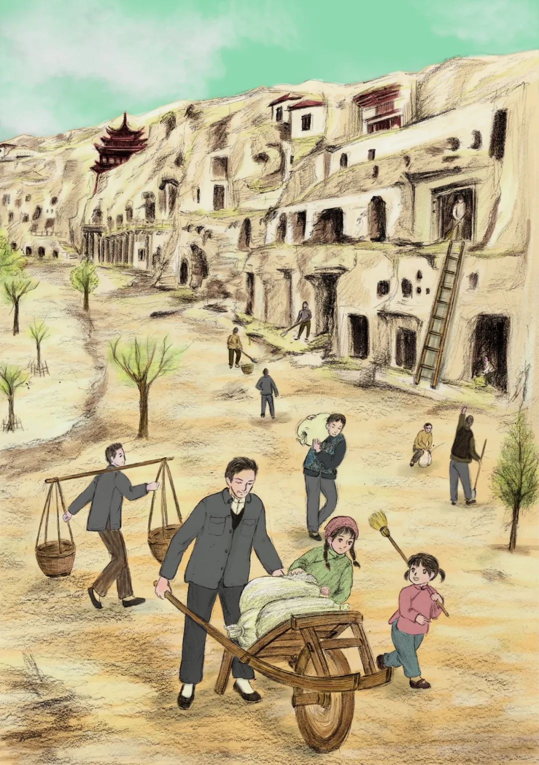 《敦煌小画师》的故事,以民国时候国立敦煌研究所初创时期为背景,以一个小女孩欣洁的眼光,摹刻了一群以敦煌为文化艺术圣地而奋斗而献身的艺术家和学者群体,这个群体以欣洁的父亲为代表,他们舍弃温暖湿润的家乡,而远赴那个遥远荒凉的所在。因为那里有敦煌,因为那里保存着一千多年前的珍贵文物和彩塑壁画,还因为那里急需有人来保护、修复和弘扬。他们来了,他们在这片戈壁之地安家扎根,在动荡的社会时局下开始了为家为国的担当,也开始了人生理想和价值的实现。这一切,以一个孩子的眼光来看,几乎就是交织着欣喜和失望、欢喜与忧愁,从茫然无知到诚挚热爱的一段生动故事。《敦煌小画师》故事情节的设定,有起伏有高潮,有亲情之爱,有田野之趣,更有人与人之间和谐相助的人性之美,读起来有听一首乡村音乐的韵律感。我觉得,一部优秀的儿童文学作品,应该就是这个样子。
