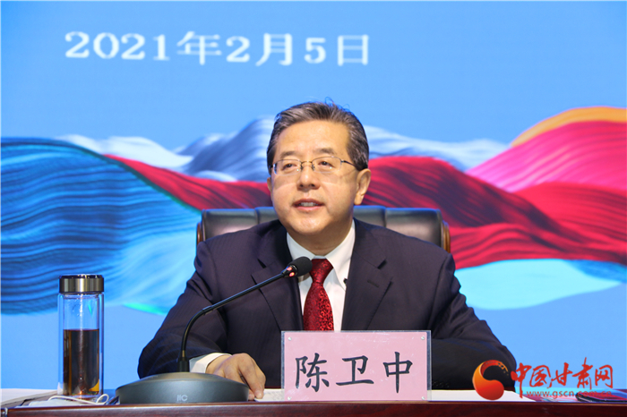 中国甘肃网2月5日讯 (本网记者 张兰琴 文/图)2月5日上午,2021年全省文化和旅游局长视频会议在省会兰州召开。与往年不同的是,这次会议贯彻落实省委、省政府的要求,兰州以外的13个市州以视频会议形式参会。整个会议简洁、务实、高效,旨在学习贯彻全国宣传部长会议、全国文化和旅游厅局长会议、省委十三届十三次全会暨省委经济工作会议、省“两会”和全省宣传部长会议精神,总结2020年主要工作,安排2021年重点任务。甘肃省委宣传部副部长,省文旅厅党组书记、厅长陈卫中在会上讲话,向全省“文旅铁军”发起号召,“干字当头”的决心引发全场热烈反响。