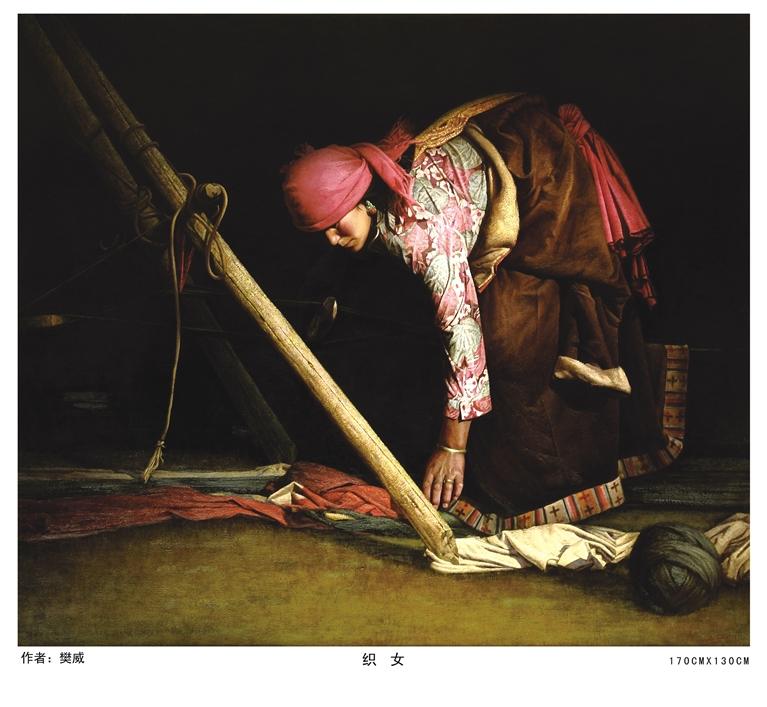 樊威前二十多年的艺术生涯主要是与油画相伴,为了创作出好的作品,他耐心学习、努力实践。他告诉记者:“记得在20世纪90年代初,中国油画协会组织全国二十位画家去欧洲交流、学习,甘肃包括我在内去了三四个人,罗浮宫、梵高美术馆等等,我们去了很多地方,看了很多的世界名作。说实话,触动非常深,尤其是那些古典作品,让我很震撼。去欧洲之前我根据法国古典技法画过一幅人物作品《才仁娜姆》,当时感觉非常不错。欧洲之行结束后,一进门我就找出了这幅作品来看,感觉就是一塌糊涂,差距真的非常大。” 看到自身的不足,樊威就开始思考着改变,而他将这种尝试首先放在了修改《才仁娜姆》这幅作品上。经过一个多月修改后的《才仁娜姆》更加成熟,最终被中国美术馆收藏。