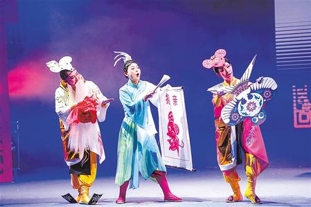 当民俗故事搬上舞台,成为一部融合了戏曲、民乐以及多种非物质文化遗产元素的儿童剧,这个家喻户晓的故事会“变身”成怎样呢?演员们一招一式展现的是京剧表演中的“手眼身法步”身段、吹着唢呐演奏的是豫剧《抬花轿》等曲目,整个舞台被庆阳的剪纸艺术装饰得喜气洋洋……