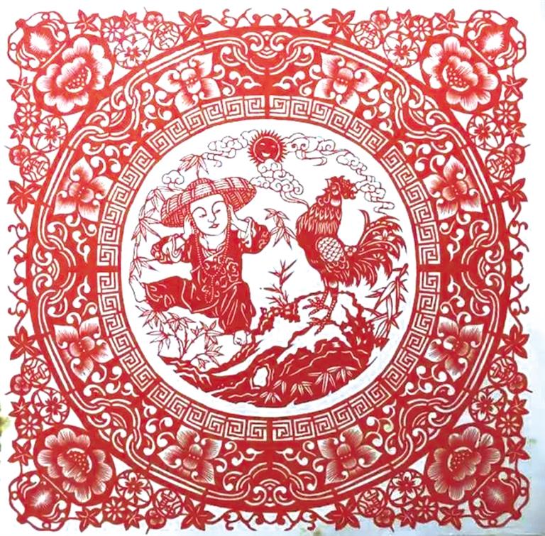 只见一把剪刀在她的手中上下翻飞,技艺纯熟的她几分钟便剪出一只活灵活现的公鸡图案。对于自己的剪纸技巧,拿了40多年剪刀的史婷颇有几分自信。