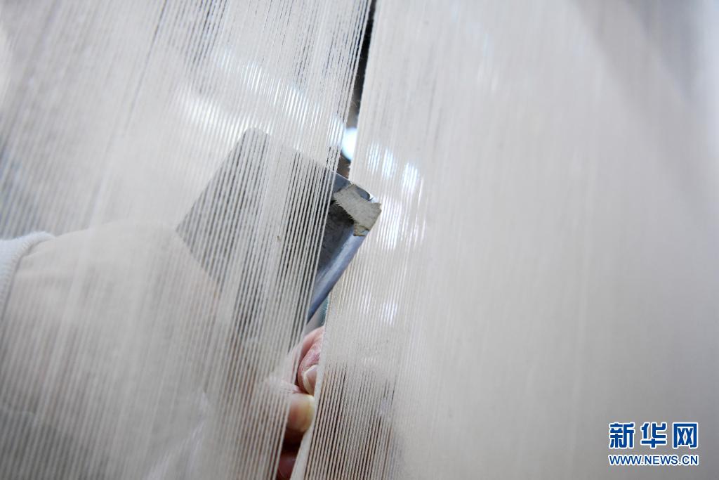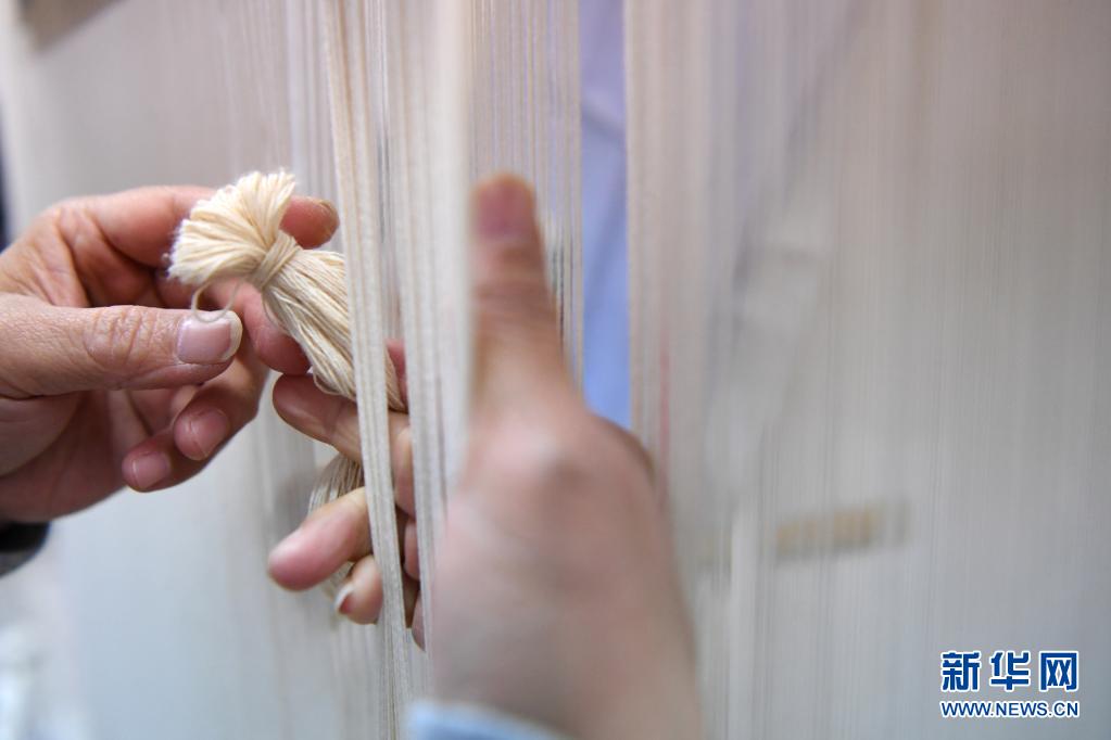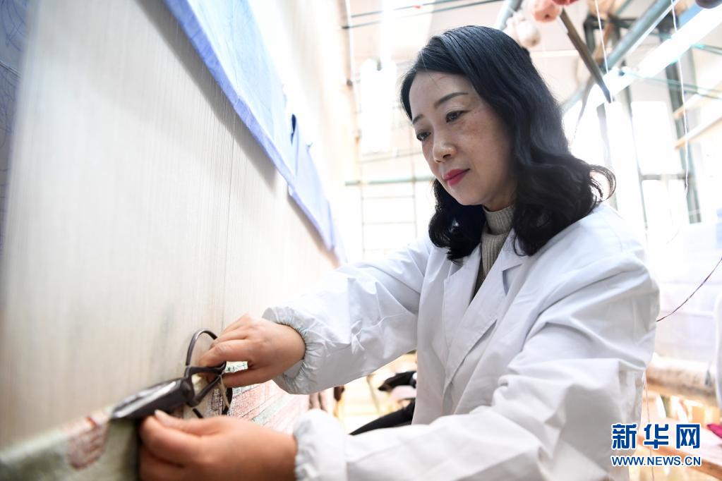 在丝毯织造车间里,黄晶蓉和匠人端坐在织机前,一手持小刀、一手扣丝线,手法娴熟地在上百条丝线间飞速穿梭,让人目不暇接。对丝毯织造匠人来说,耐心和眼力直接关系到丝毯的品质。