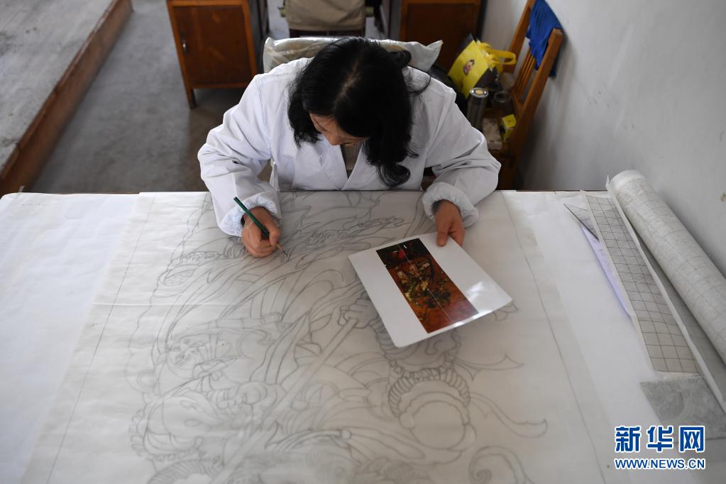黄晶蓉在做天水丝毯的图案设计(4月12日摄)。新华社记者 杜哲宇 摄