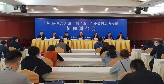 4月23日上午,由甘肃省文化和旅游厅与中国铁路兰州局集团有限公司联合举办的“环西部火车游”暨五一小长假运力安排新闻通气会在兰州召开。甘肃省文化和旅游厅党组成员、副厅长万学科,中国铁路兰州局集团有限公司党委副书记李光泽,中国铁路兰州局集团有限公司副总经理黄磊,兰铁国旅公司董事长符庆忠出席并发布介绍“五一”假日甘肃文旅主题线路产品和“环西部火车游”线路产品情况。
