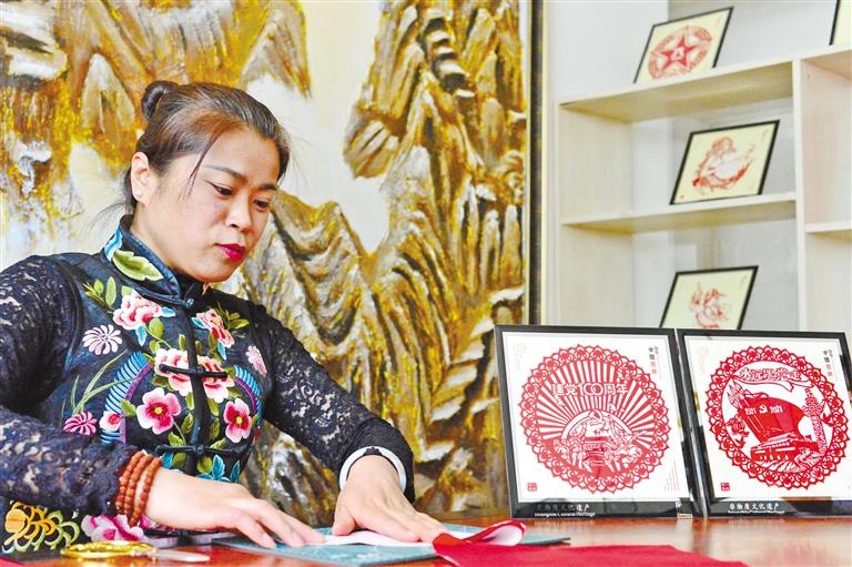“内容栩栩如生,画面细腻精妙。”在杨树珍的社区工作室中能看到很多剪纸作品,从早期的窗花、福字、年年有余到近期的抗击疫情、中华人民共和国成立70周年、建党100周年等作品,每一幅作品就是一个个经典的历史瞬间,饱含着剪纸艺人对艺术创造的满腔热情。