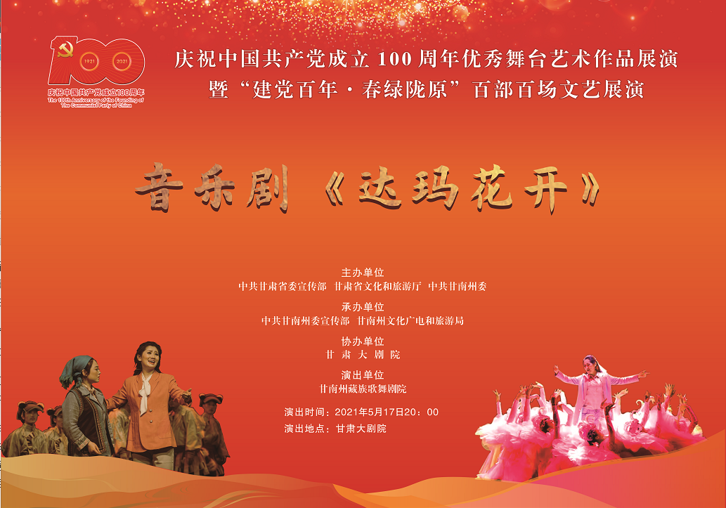 中国甘肃网5月16日讯(本网记者 靳佩佩)5月17晚,由中共甘肃省委宣传部、甘肃省文化和旅游厅、甘南州委主办,中共甘南州委宣传部、甘南州文化广电和旅游局承办的大型音乐剧《达玛花开》将在甘肃大剧院精彩上演。届时,中国甘肃网将全程直播。