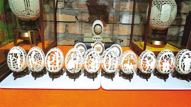 “后来我在网上搜视频看制作过程,觉得没想象中那么难,就开始买工具自学,用鸡蛋练手。”田吉文说,因为鸡蛋壳非常薄,且自己是新手,只能在上面做浮雕,由于力度把握不好,雕碎了三四十个鸡蛋才完成了一件完整的作品。“虽然只是雕了简单的几个字,效果也不理想,但总算迈出了成功的第一步。”