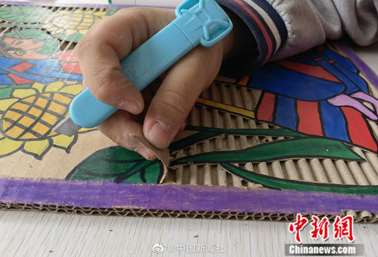 近日,甘肃省白银市白银区第十四小学学生利用废弃纸版,创作民族服饰、民族建筑、民族乐器等纸版画,栩栩如生,更具立体感。