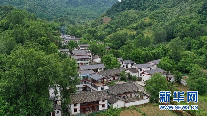 甘肃省陇南市康县长坝镇福坝村的村民小院(5月20日摄,无人机照片)。新华社记者 陈斌 摄
