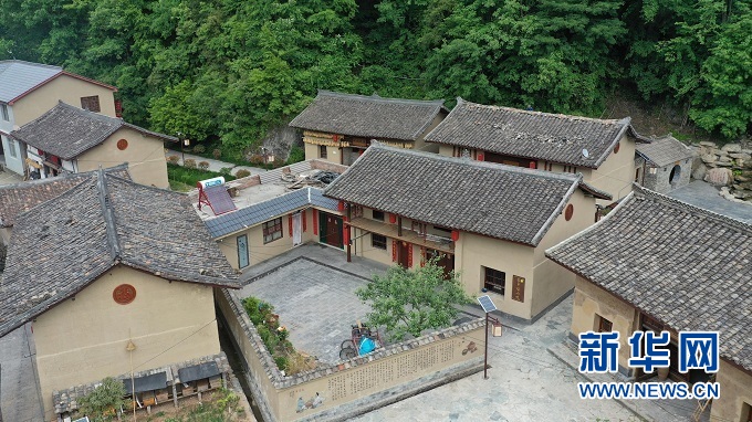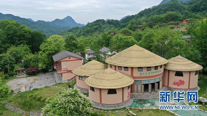 位于甘肃省陇南市康县王坝镇何家庄村的康县美丽乡村王坝主题馆(5月21日摄,无人机照片)。新华社记者 陈斌 摄