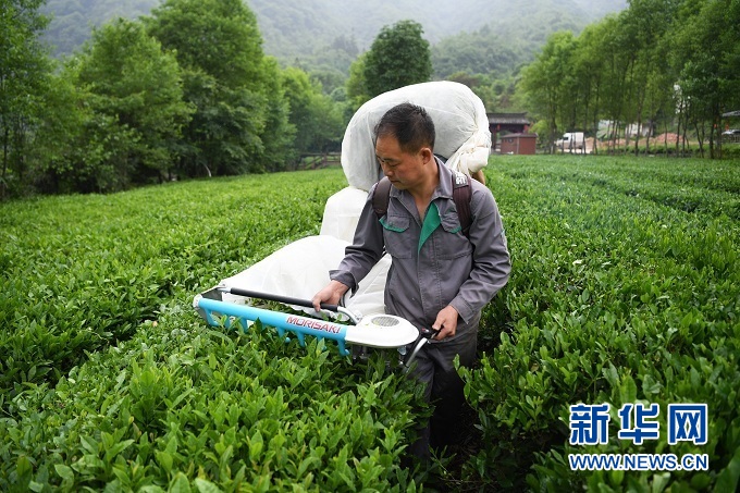 茶农在甘肃省陇南市康县阳坝镇的茶园里采茶(5月22日摄)。新华社记者 陈斌 摄