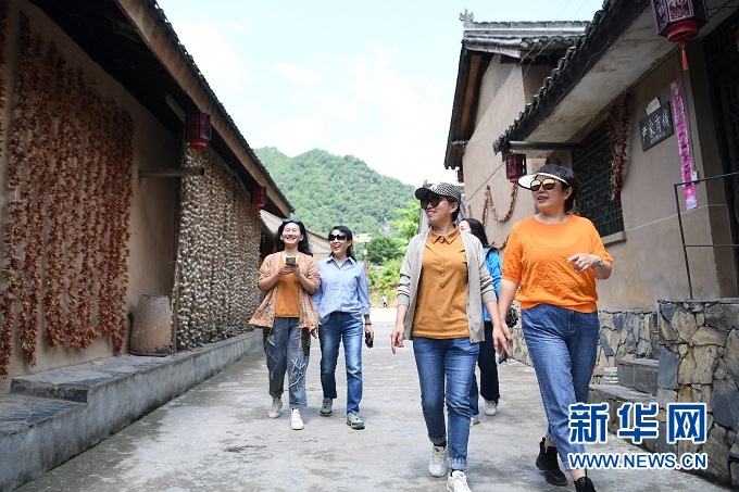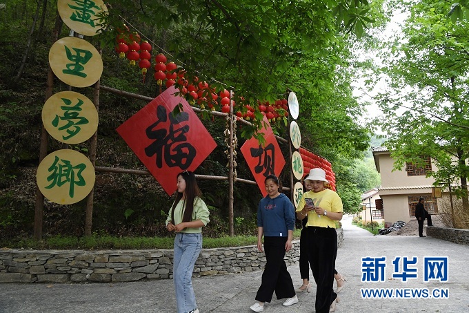 游客在甘肃省陇南市康县长坝镇福坝村游览(5月20日摄)。新华社记者 陈斌 摄