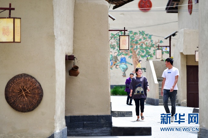 游客在甘肃省陇南市徽县嘉陵镇稻坪村游览(5月19日摄)。新华社记者 陈斌 摄