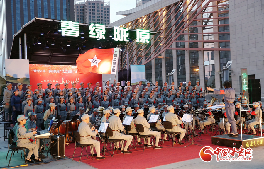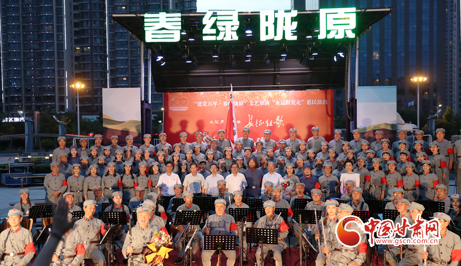 中国甘肃网6月12日讯(本网记者 任磊 张玉芳)12日晚,由中共甘肃省委宣传部、甘肃省文化和旅游厅主办,甘肃铁鹰艺术团演出的“建党百年·春绿陇原”文艺展演大型声乐套曲《长征组歌》唱响黄河之滨。省委宣传部副部长、省文化和旅游厅党组书记、厅长陈卫中,省文化和旅游厅党组成员、副厅长杨建仁和兰州市各界群众2000多人现场观看演出。