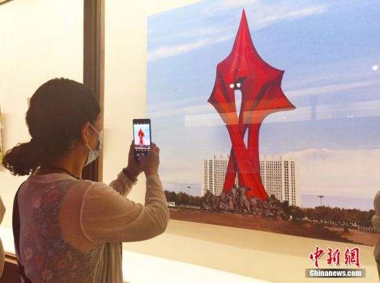 图为游客拍摄雕塑图片。 闫姣 摄