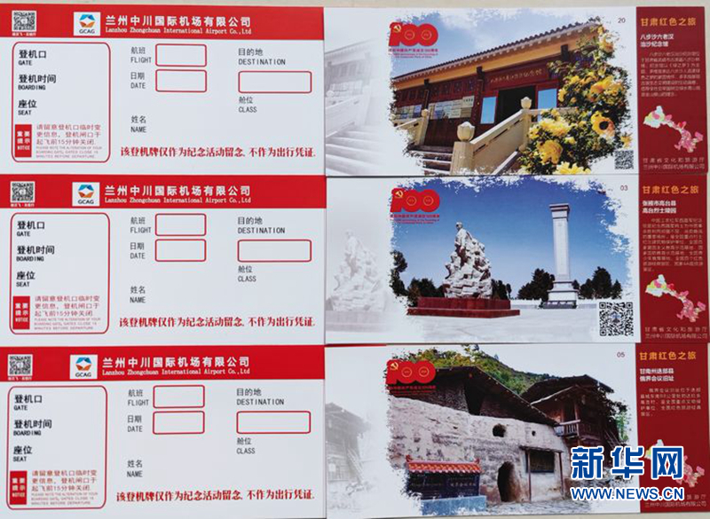 新华网兰州6月17日电(记者 李杰)记者从兰州中川国际机场获悉,6月16日起,甘肃省文化和旅游厅、兰州中川国际机场联合推出“甘肃红色之旅”纪念登机牌,精选印制20个甘肃红色旅游景区图片,在提升旅客乘机体验的同时,加深旅客对甘肃这片红色热土的了解。