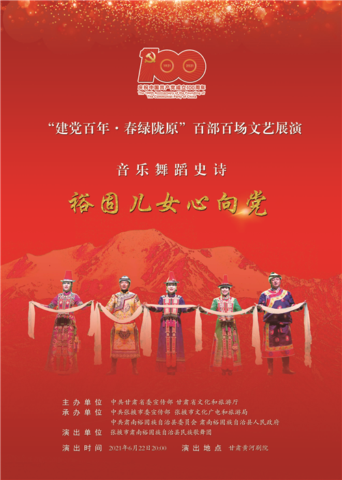 中国甘肃网6月22日讯(本网记者 宋芳科 实习生 张文池)裕固儿女心向党,奋进开启新征程。今晚8时,张掖肃南音乐舞蹈史诗《裕固儿女心向党》将亮相甘肃省委宣传部、省文化和旅游厅主办的“建党百年·春绿陇原”百部百场文艺展演舞台,带着大家一起走进美丽肃南,感受裕固儿女听党话、跟党走,用勤劳双手创造美好新生活的豪迈画卷。