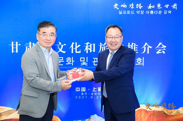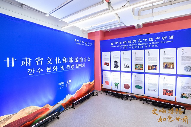 推介会现场,携程集团在会场周围提供了专属区域来摆放甘肃的特色非遗文创展品,在25副甘肃经典非遗项目展板的吸引下,琳琅满目的非遗文创展品让现场的韩国嘉宾兴趣盎然、爱不释手。“交响丝路·如意甘肃”文化旅游资源推介由中韩双语同程发布,中国韩国商会·上海首席副会长安秉英先生向韩国嘉宾分享了自己去甘肃的美好经历,他极富感染力“现身说法”再次让韩国嘉宾对甘肃心生向往。(文/甘肃省文化和旅游厅 任博)