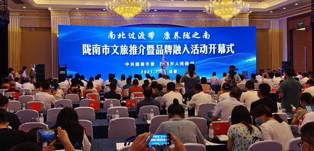 7月12日,由陇南市委、市政府组织主办的“南北过渡带·康养陇之南”陇南市文旅推介暨品牌融入活动在成都市开幕。陇南市委书记张柯兵,四川省文化和旅游厅二级巡视员卢锋出席开幕式,甘肃省文化和旅游厅党组成员、副厅长万学科出席开幕式并致辞,陇南市委副书记、武都区委书记田广慈,陇南市委常委、常务副市长漆文忠,陇南市副市长张宏、李逢春,成都市文化广电旅游局相关处室负责人等出席开幕式。