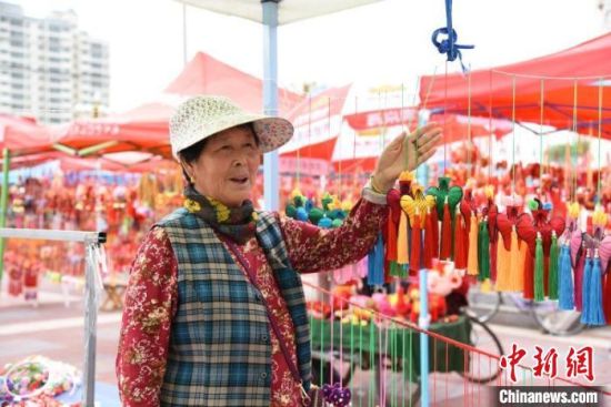 图为每年端午节,在庄浪县文化广场内展销的马尾荷包。(资料图)李顺民 摄