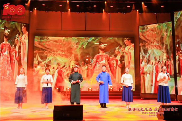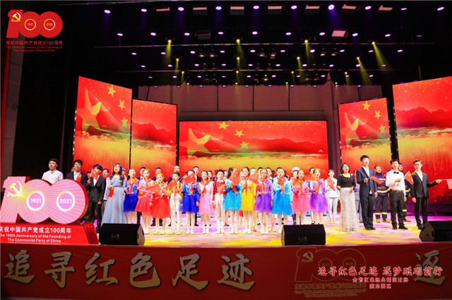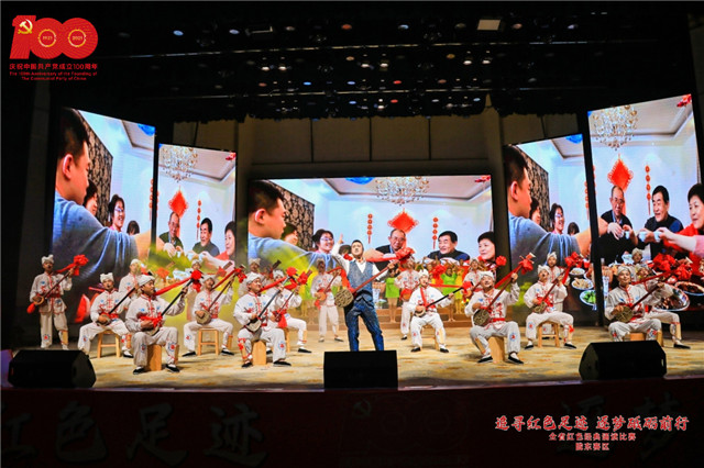 回首百年印迹,苦难辉煌。比赛在南梁说唱《百年沧桑话辉煌》中拉开了序幕。“……我肚子里的生命我的孩子,多想带你走啊,可你的娘是红军……”一首《战火中的婚礼》,将全场观众带入了那个战火纷飞的年代,无数的母亲,为了更多孩子的幸福,为了更多母亲的心愿,舍小家为大家,让自己的生命永远定格在了青春时的模样。朗诵《信念永恒》《幽幽青山埋忠骨》《红纱》《不朽的军魂》《老百姓的大救星》《破晓的曙光》如歌如泣地演绎了像刘志丹、红五团、阎洼子四十二烈士一样的无数中国共产党人、红军战士们,为了探索救国救民的道路,为心中的信仰视死如归、无怨无悔的豪情壮志和炽烈的家国情怀。《回家》以跨越时空的对话的方式,深情呈现了父亲已然牺牲在建立新中国的征程上,母亲毅然决然送儿跨过鸭绿江,赴朝鲜保家卫国的故事,故事感人至深,催人泪下。正是有了许多许多这样伟大的中国父母,正是有许多许多这样沿着父亲信仰信念前行的儿子们,才撑起了中国的脊梁,才筑起了中国永不倒的长城。青山无言,永怀碧血;日月行天,以鉴丹心。百年征途上的中国共产党人,已经把自己的精神融进祖国的江河、民族的星空,汇入天地凛然长存的浩气之中,与国家、民族、人民的脉搏一起,生生不息,永恒跳动。