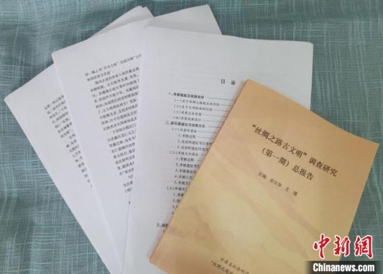 7月下旬,甘肃省社会科学院工作人员展示《丝绸之路古文明》第一阶段考察报告打印版。 闫姣 摄