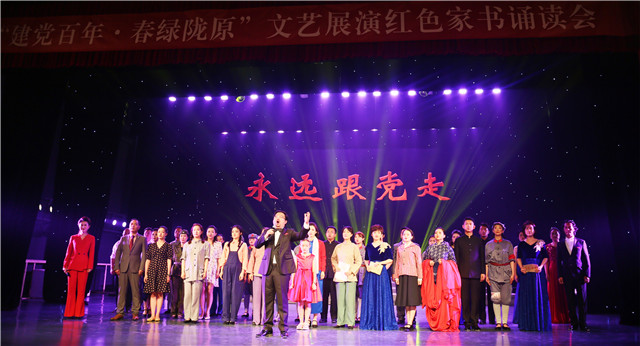 为热烈庆祝中国共产党百年华诞,讴歌党的丰功伟绩,弘扬红色文化、传承革命精神,为奋斗“十四五”、奋进新征程提供强大精神力量,进一步延伸和拓展党史学习教育平台,推动文明机关建设,营造全系统党史学习教育浓厚氛围,省文旅厅积极发挥文旅行业特长,以“建党百年·春绿陇原”百部百场文艺展演为平台,组织省内多家文艺院团创演了多场各具特色的系列专题文艺演出,献礼党的百年华诞。在系列演出中,省文旅厅系统党员干部为庆祝中国共产党成立100周年自创自排的“红色家书诵读会——永远跟党走”节目形式独特,别具一格。6月29日在省文旅厅系统首演成功后,因节目感人至深,观众反响强烈,党史学习教育效果突出,7月21日至22日,又登上了“建党百年·春绿陇原”文艺展演大舞台,以惠民演出形式加演了两场,现场及网络观演人数累计超过60万人次,演出活动受到数十家主流媒体的持续关注和广泛报道,也得到广大观众普遍好评。