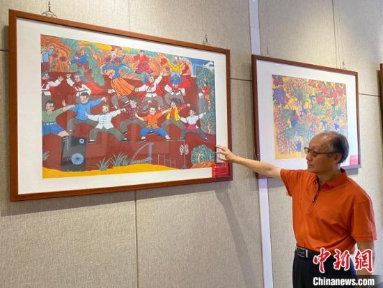 7月底,“庆祝建党百年 助力乡村振兴””甘肃农民画作品展在兰州展出。 徐雪 摄