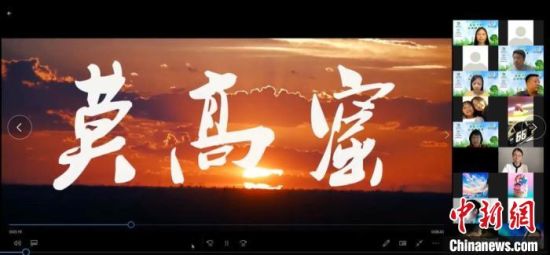 图为海外华裔青少年“云游”敦煌莫高窟。 网络视频截图